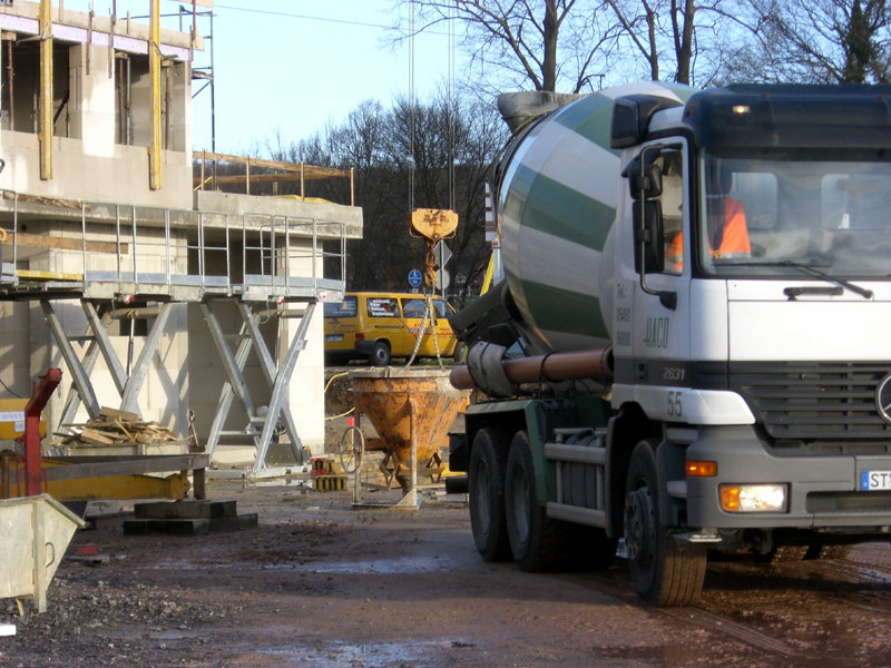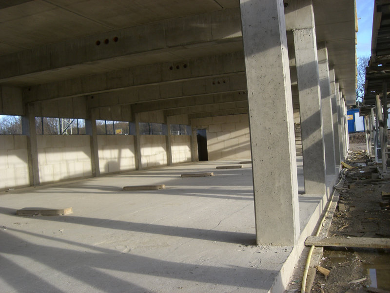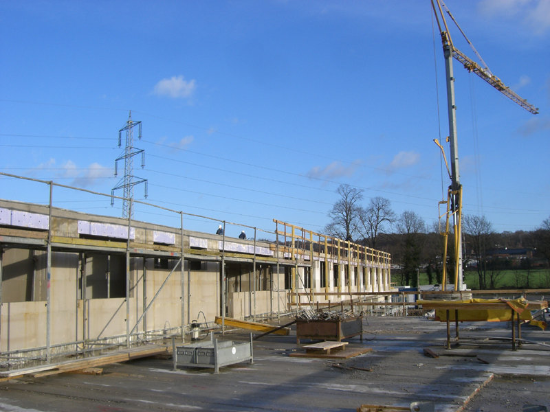 Das Hauptgebäude ist im Rohbau so gut wie fertig. Die letzte Obergeschossdecke im Bereich Rettungsdienst und Ruheräume ist gegossen.