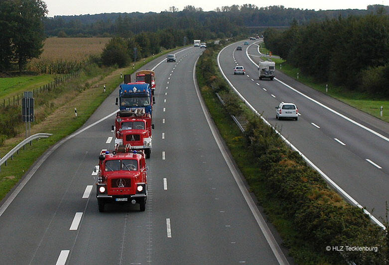 Auf der Hinfahrt gab es allerdings zwei Fahrzeugpannen: während das Tecklenburger "Ello" Robur-LF nach einer kleinen Reparatur die Fahrt fortsetzten konnte, musste das Ibbenbürener TSF auf FK1250 nach einem Komplettausfall der Lichtmaschine vom ADAC nach Ibbenbüren zurück gebracht werden.