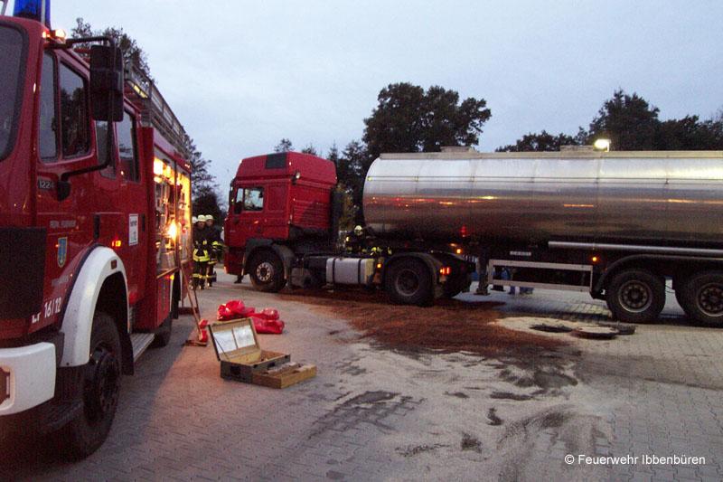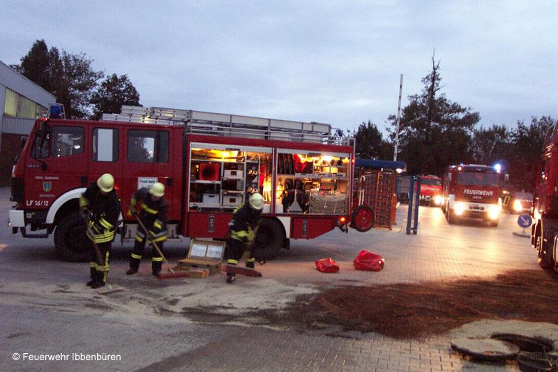 Die bereits auf den Firmenhof ausgelaufenen Dieselmengen wurden mit Bindemittel abgestreut und später zur Entsorgung aufgenommen.