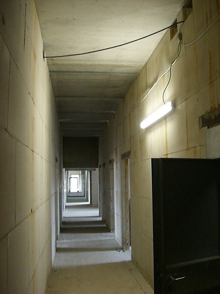 Im Hauptgebäude ist die Sanitärfirma damit beschäftigt die Abwasserrohrleitungen für sämtliche Sanitärbereiche zu verlegen.