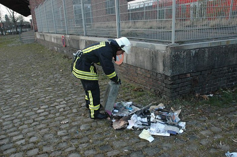 Durch den schnellen Einsatz der alarmierten Kräfte konnte ein Übergreifen der Flammen auf die umliegende, nicht unerhebliche Brandlast verhindert werden.