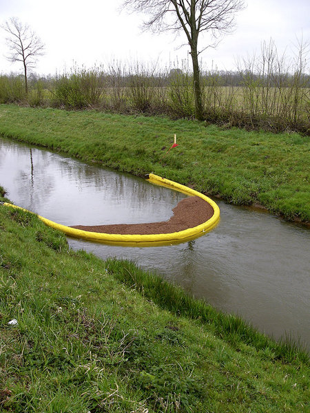 Um eine weitere Ausbreitung des Öl-Wasser-Gemisches zu unterbinden, wurde durch die eingesetzen Kräfte der Ibbenbürener Wehr eine Ölsperre in Höhe der St.-Josef-Straße in Stellung gebracht.
