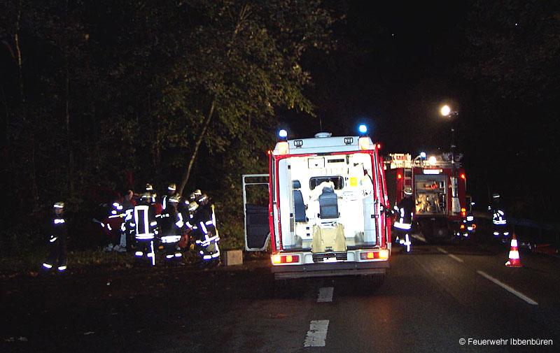 Am Dienstag, dem 15.10.2002, wurde die Freiwillige Feuerwehr gegen 22.30 Uhr zu einem TH-Einsatz alarmiert: ein Alleinunfall, bei dem ein Pkw gegen einen Baum gefahren war. Eine Person war im Fahrzeug eingeklemmt.Auf der abschüssigen, kurvenreichen Strecke der ehemaligen B65 war der 18-jährige Fahrer mit seinem Wagen von der Fahrbahn abgekommen und auf der anderen Straßenseite frontal gegen einen Baum gefahren. Der Fahrer wurde dabei nur leicht verletzt.