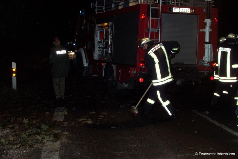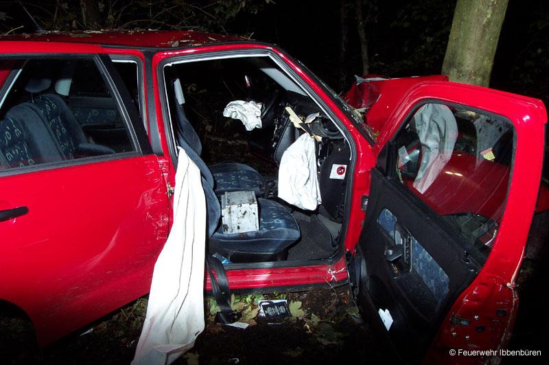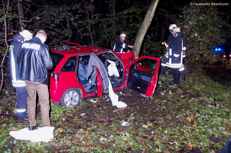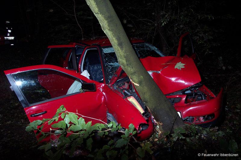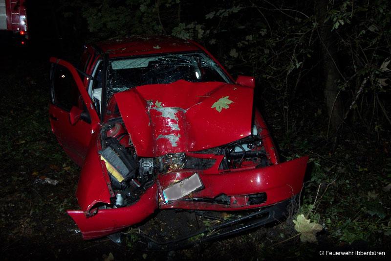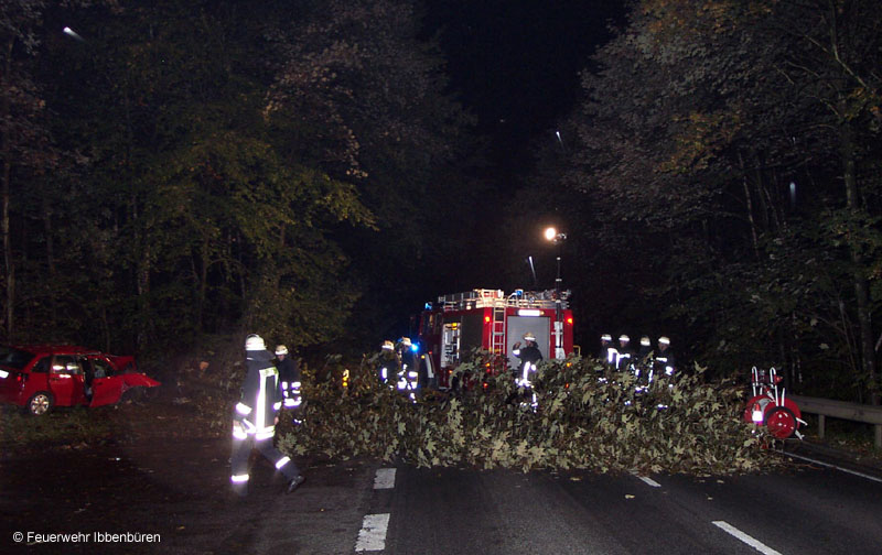 Die 17-jährige Beifahrerin wurde bei dem Aufprall im Fahrzeug eingeklemmt und musste mit technischem Gerät befreit werden. Sie wurde bei dem Unfall schwer verletzt. Durch den Aufprall wurde der Baum soweit entwurzelt, dass er nach dem Ziehen des Pkw auf die Fahrbahn fiel. Der Baum wurde zerlegt und von der Fahrbahn geräumt.