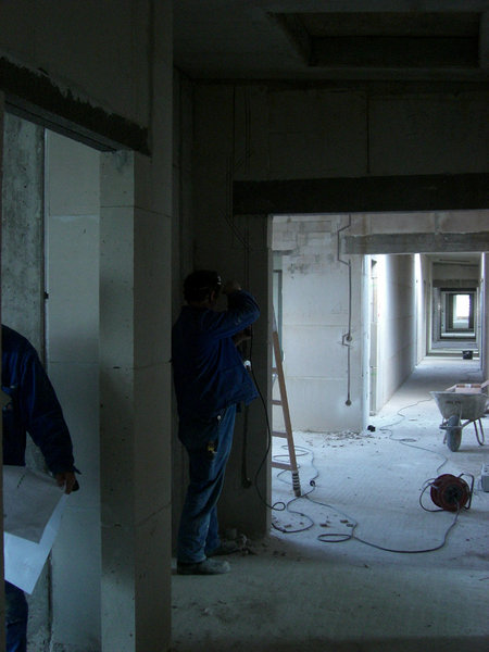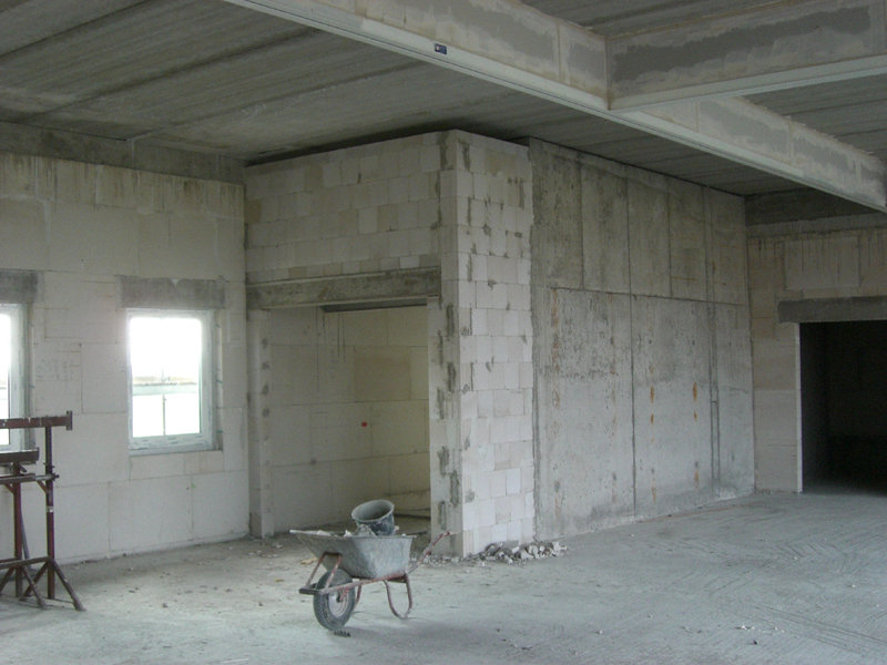 Die Innenputzarbeiten sollen schon in der übernächsten Woche beginnen. Dafür ist bereitz ein Transportsilo für Putzmörtel aufgestellt worden.