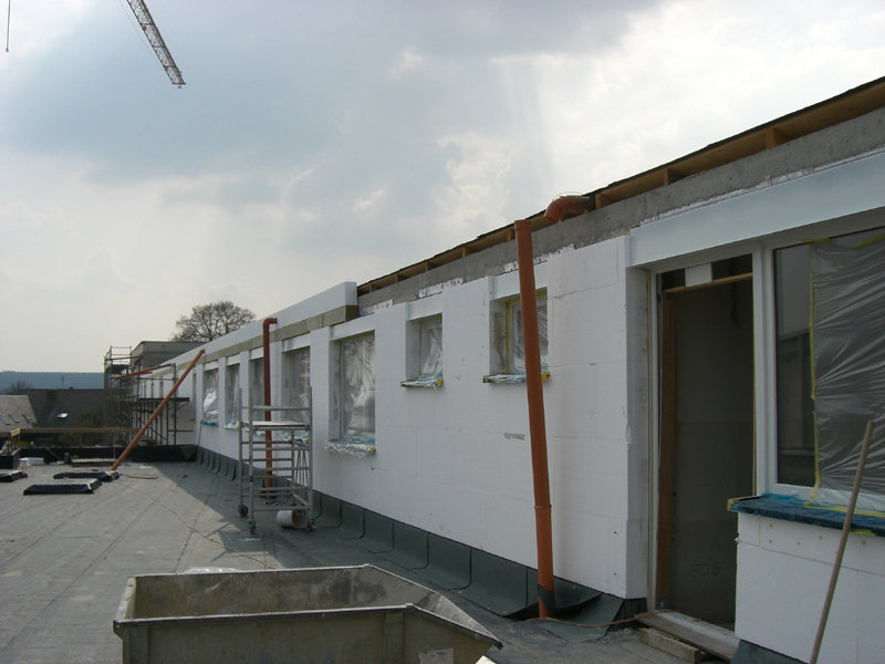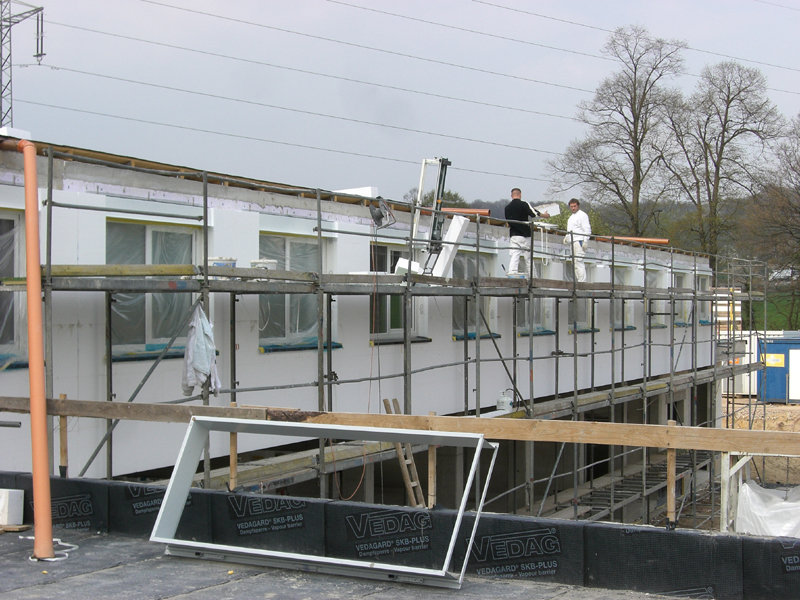 In den nächsten Tagen werden dann die Außenisolierung und die Außenverkleidung angebracht.