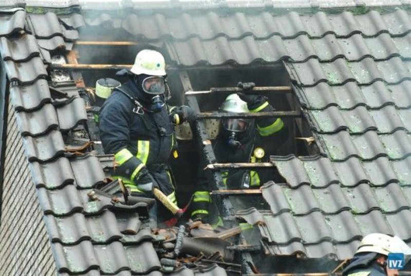 Ein erster Angrifftstrupp verschaffte sich direkt unter umluftunabhängigem Atemschutzgerät und einem C-Rohr sowie einer Wärmebildkamera Zugang zum Dachboden und begann dort das Feuer vor Ort zu bekämpfen.