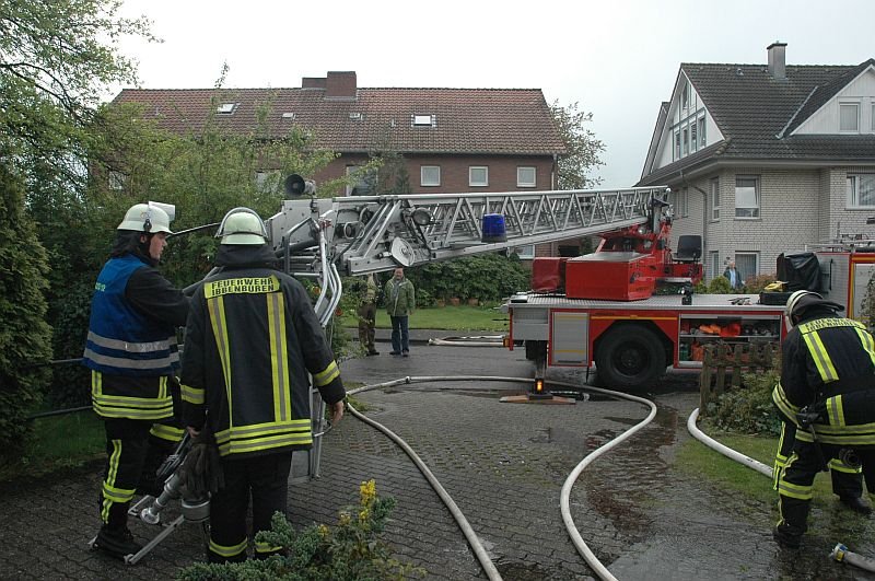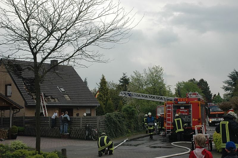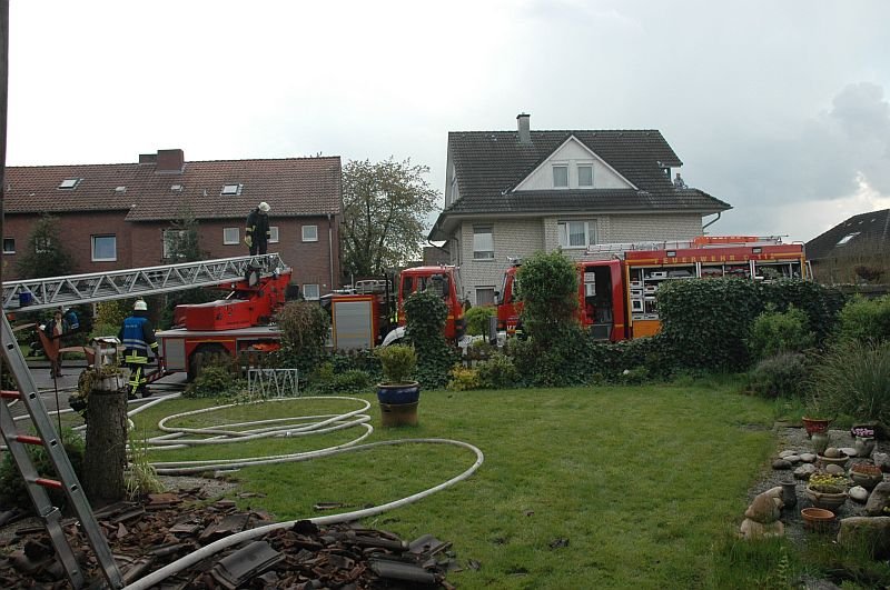 Beim Eintreffen der ersten Kräfte stellte sich schnell heraus, dass der eigentliche Küchenbrand schon durch die Hausbewohner gelöscht wurde, der Brand sich aber, vermutlich über die Abzugshaubenentlüftung, auf den Dachstuhl des Einfamilienhauses ausgebreitet hatte.