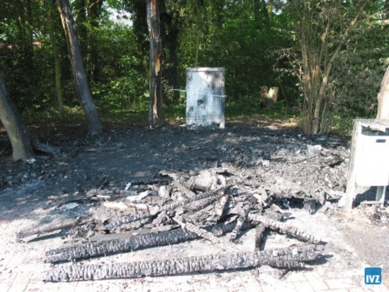 An der Südseite des Aasee, nahe des Kiosk und der "Beach", brannte die Schutzhütte des Schiffmodellclubs beim Eintreffen der ersten Kräfte in voller Ausdehnung.