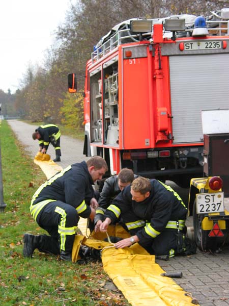 November alarmiert. In der Nacht davor hatte offensichtlich ein Binnenschiff Öl im Altarm des Mittellandkanals in Uffeln hinterlassen.Gegen 7 Uhr morgens war die Wasserschutzpolizei Bergeshövede davon unterrichtet worden, gegen 9 Uhr rückte der Löschzug Stadtmitte mit etwa 15 Mann aus, um Ölsperren zu legen. Von der öligen Verunreinigung betroffen war dabei eine Fläche von knapp sechs Quadratkilometern. Die Feuerwehr pumpte Ölstoppschläuche auf und legte sie mit Gewichten im Kanal aus.