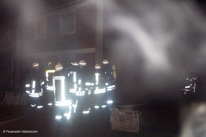 Alle Bewohner konnten rechtzeitig das Haus verlassen, so dass trotz starker Verqualmung niemand verletzt wurde. Das Feuer wurde von zwei Trupps unter schwerem Atemschutz trotz Null-Sicht und geplatzter Heißwasserrohre im Angriffsweg gelöscht, bevor es auf andere Räume oder Stockwerke übergreifen konnte. Die Räume im Erdgeschoss wurden dazu ebenfalls unter Atemschutz überprüft. Der Lüfter wurde auch eingesetzt.