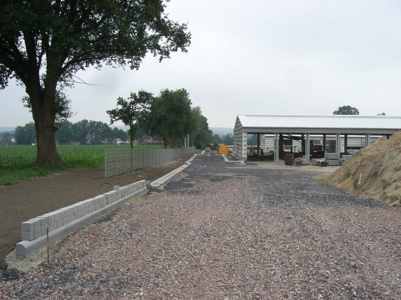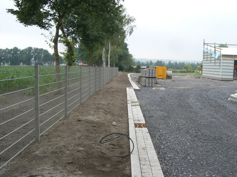 Auch im Außenbreich geht's zügig weiter: es sind weitere Kantensteine verlegt worden und der Zaun zum östlichen Nachbaracker ist schon aufgestellt. Die Kanalanschlußarbeiten am Niedersachsenring sind fast abgeschlossen.